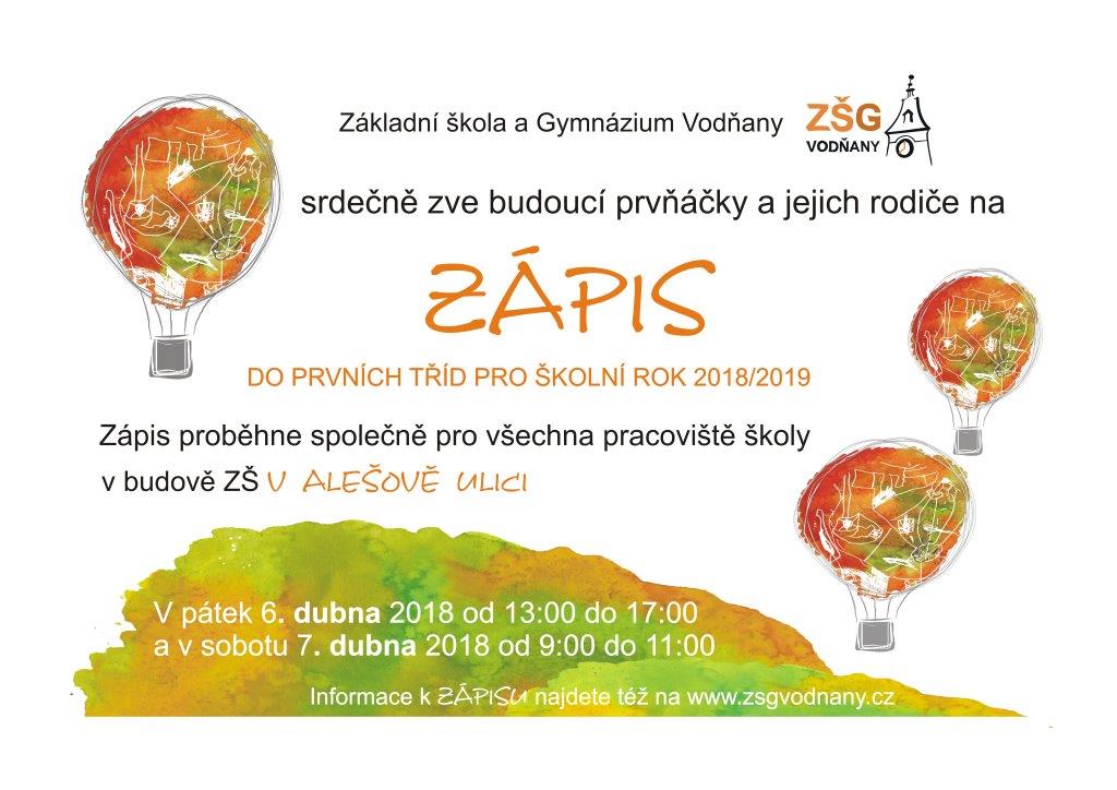 Zápis do prvních tříd pro školní rok 2018/ 2019 se bude pro všechny součásti školy konat v budově Alešova, a to v pátek 6.4.2018 od 13:00 do 17:00 a v sobotu 7.4.2018 od 9:00 do 11:00 |